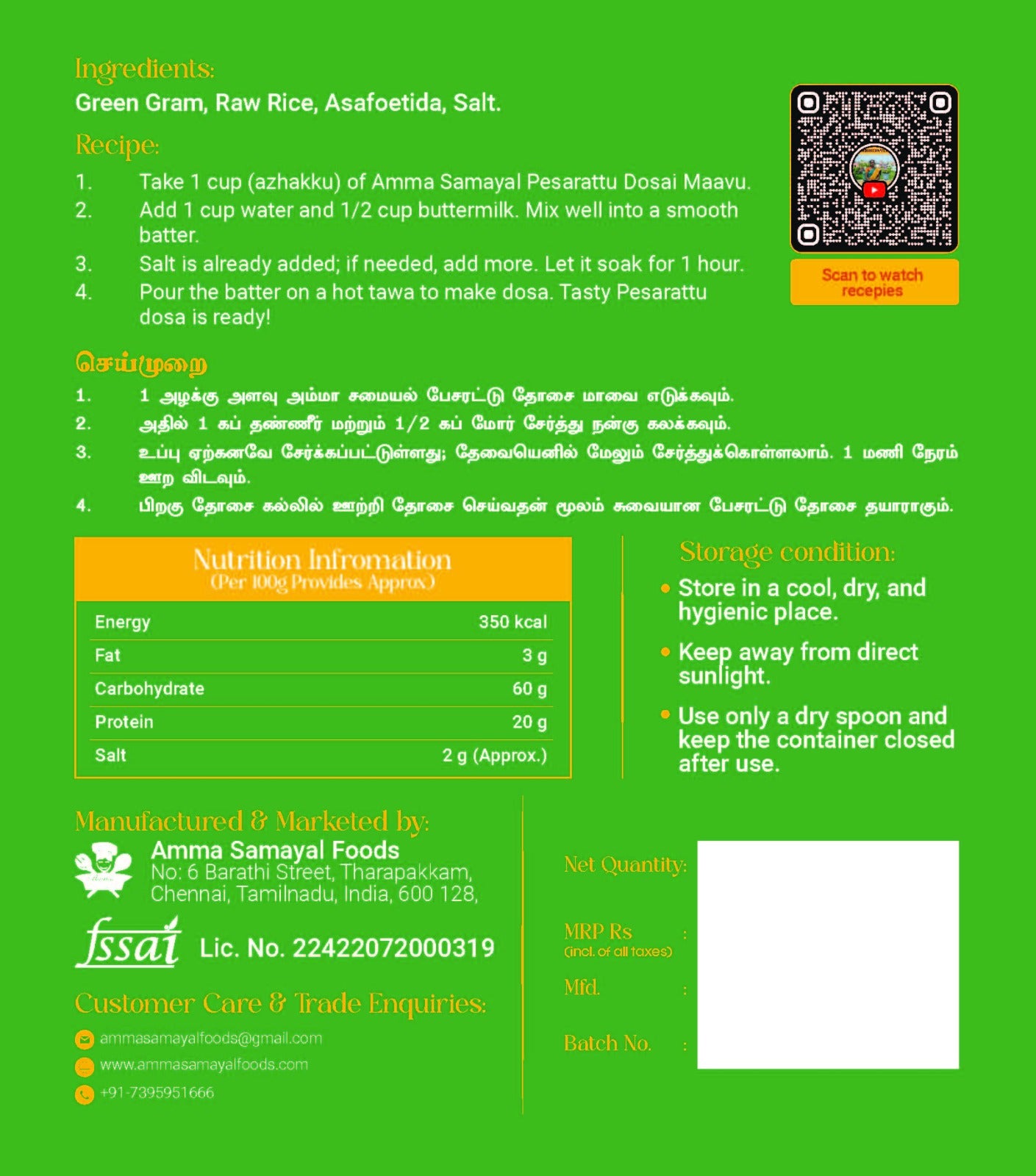 Versatile Usage: From classic Pesarattus to innovative variations, our mix is versatile, designed to complement a range of dosa recipes.